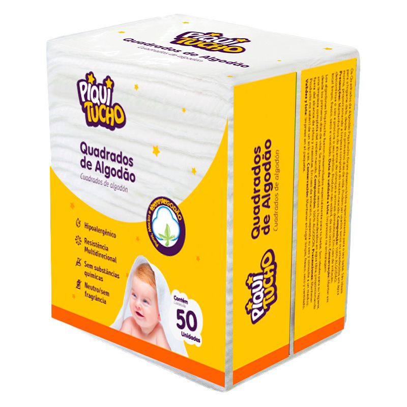 Os Quadrados de Algodão Piquitucho foram especialmente desenvolvidos para atender às necessidades do seu bebê com suavidade e eficiência. Produzidos com 100% algodão puro, possuem duas faces com texturas diferentes: uma lisa para uma limpeza suave e outra texturizada para uma limpeza mais eficaz.