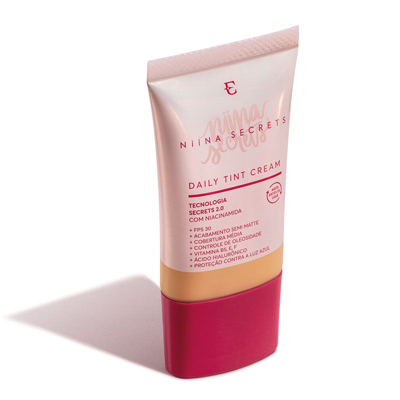 Descubra a inovação da NIINA SECRETS BASE DAILY TINT CREAM COR 13, uma base líquida multifuncional que vai além da maquiagem, oferecendo um tratamento diário completo para sua pele. Com um acabamento semi matte de "segunda pele", esta fórmula leve e respirável proporciona cobertura média construível e longa duração. Ela uniformiza o tom da pele, camuflando olheiras e vermelhidões sem marcar as linhas de expressão. Além de embelezar, a base oferece FPS 30 UVA++ e proteção contra a luz azul, essencial para o dia a dia. Garante hidratação 24 horas e eficaz controle de oleosidade. Sua exclusiva Tecnologia Secrets 2.0, enriquecida com ácido hialurônico, óleo de rosas, vitaminas (B5, E e F) e Niacinamida, nutre, possui ação antioxidante, auxilia na formação de colágeno e ajuda na prevenção da acne, melhorando a aparência da pele. É um produto testado em peles oleosas, não-comedogênico e não-acnegênico, perfeito para quem busca beleza e cuidado em um só produto.