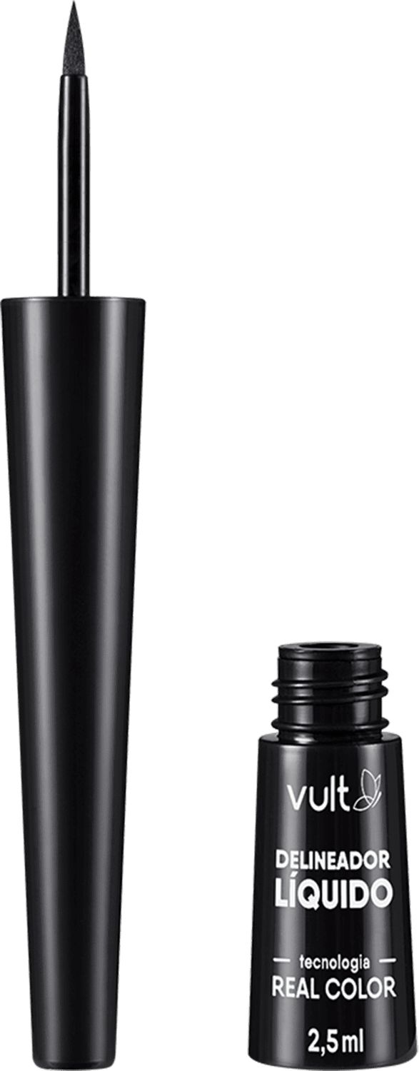 O Delineador Líquido Preto Vult Real Color 2,5ml é ideal para criar traços perfeitos e intensos, com acabamento matte extra preto e longa duração de 12h que não borra.